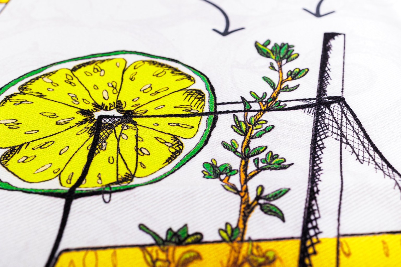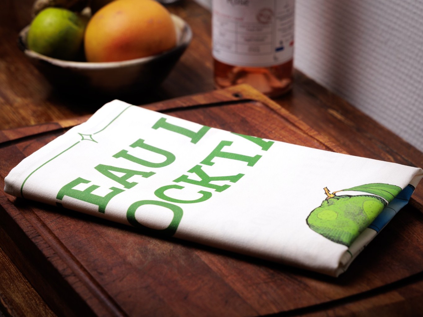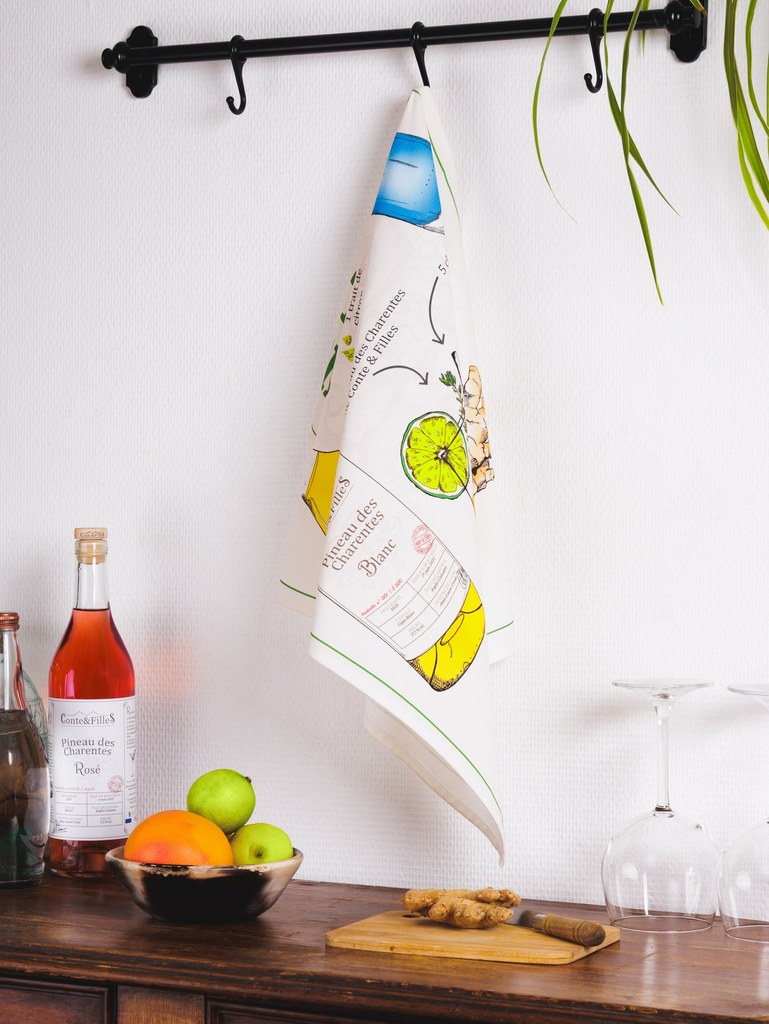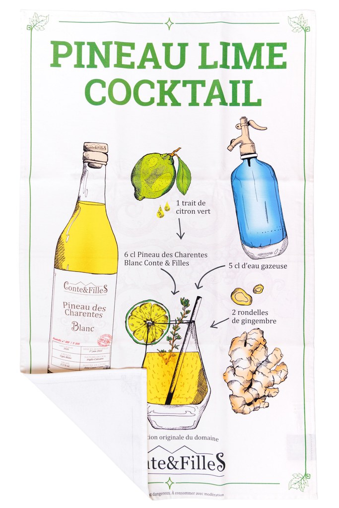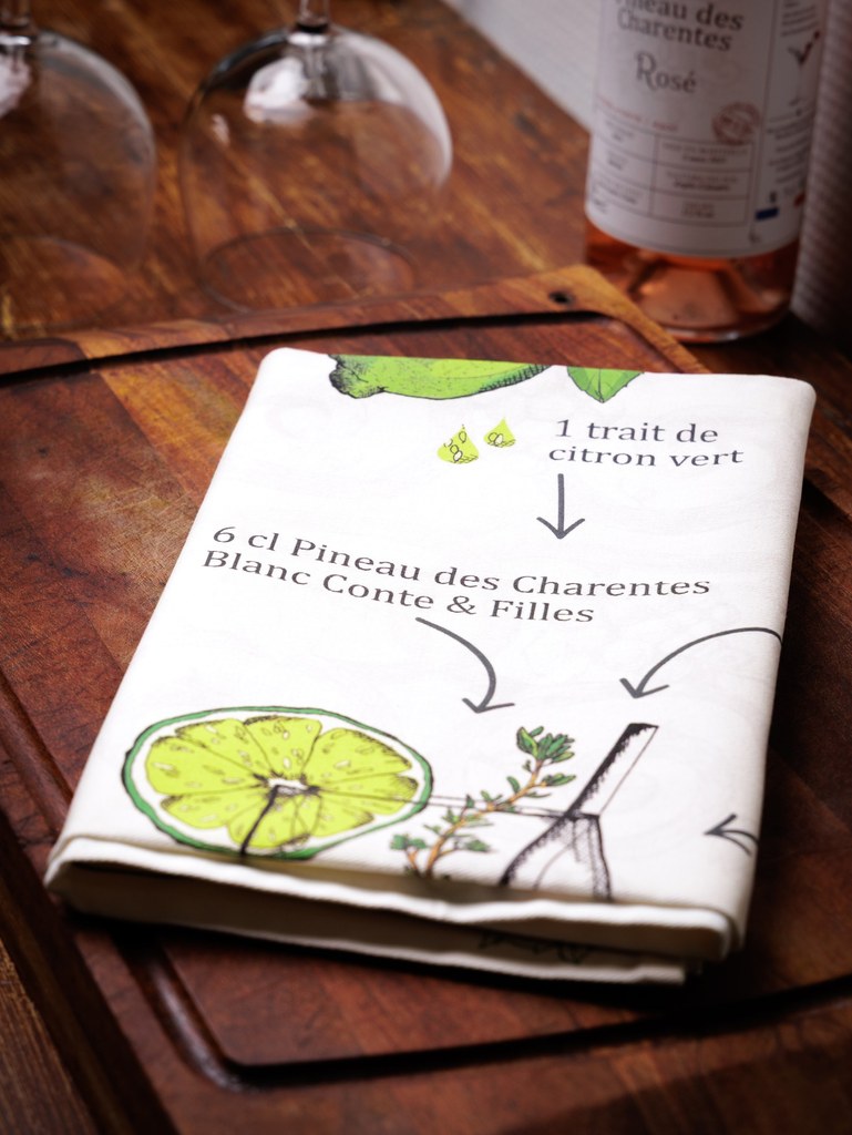 Un peu de fraîcheur et de modernité en cuisine avec ce cocktail…pardon, ce torchon aux couleurs acidulées de notre cocktail Signature: le Pineau Lime Cocktail.